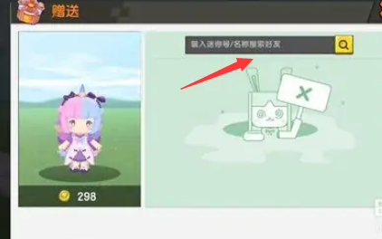 4、输入好友的迷你号或名称进行搜索,赠送即可。