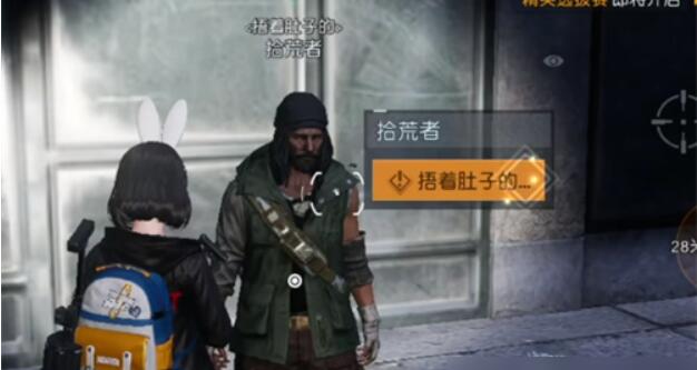 1、去到遗迹之城,在纳尔逊广场南边的英博百货找到捂着肚子的拾荒者。