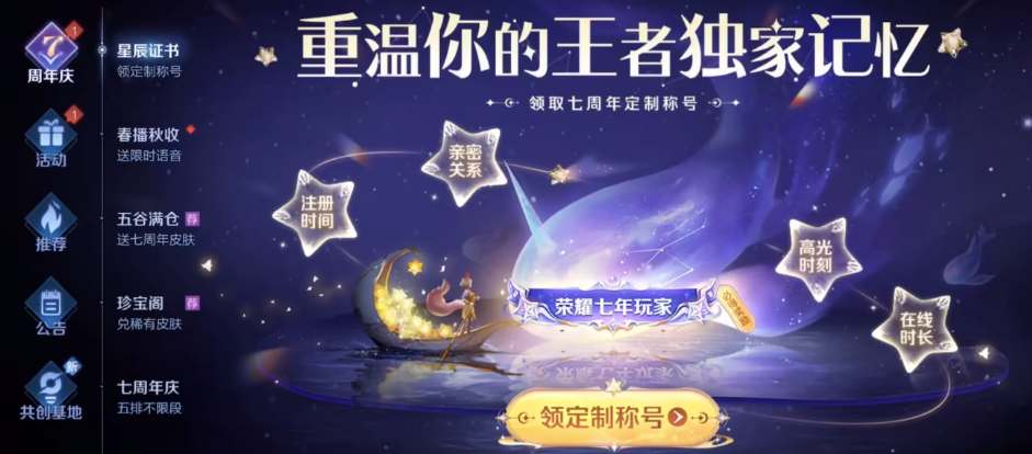 以上就是小编为大家带来的王者荣耀七周年限定称号领取方法,希望能够帮助到大家。