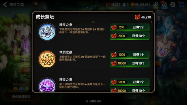 2、精灵之花是升级突破的重要材料,越高星的英雄在升级的时候需要的材料也越高级。
