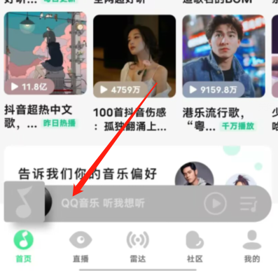 1、打开QQ音乐,点击下方播放状态栏。