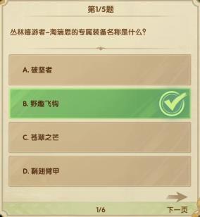 1、问:丛林嬉游者-淘瑞思的专属装备名称是什么?