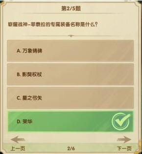 2、问:崭耀战神-菲泰拉的专属装备名称是什么?