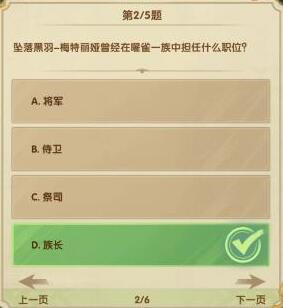 2、问:坠落黑羽-梅特丽娅曾经在靡雀一族中担任什么职位?