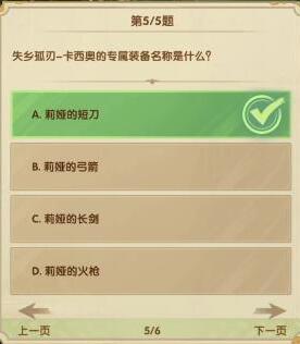 5、问:失乡孤刃-卡西奥的专属装备名称是什么?