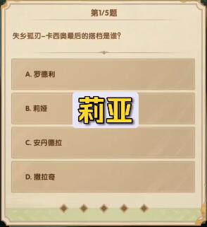 1、问:失乡孤刃-卡西奥最后的搭档是谁?