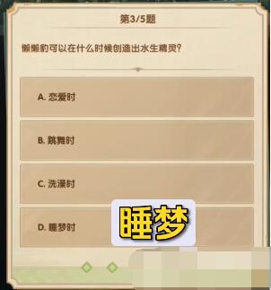 3、问:懒懒豹可以在什么时候创造出水生精灵?
