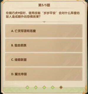 5、问:伶俐巧虎9级时,使用技能“岁岁平安”会对什么阵营的敌人造成额外的恐惧效果?