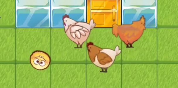 4、升级后出现三个小鸡,小鸡分散在地图每个角落。