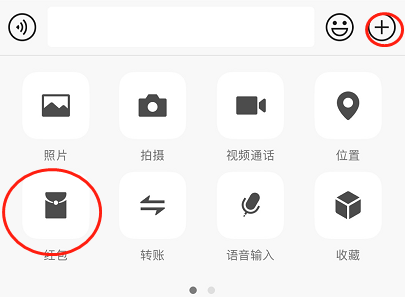 2、然后我们选择要发送红包的朋友,点击如图所示的加号,点击红包中的拜年红包。