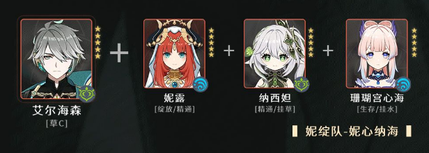 阵容推荐:艾尔海森+妮露+纳西妲+珊瑚宫心海
