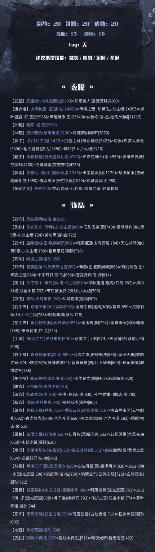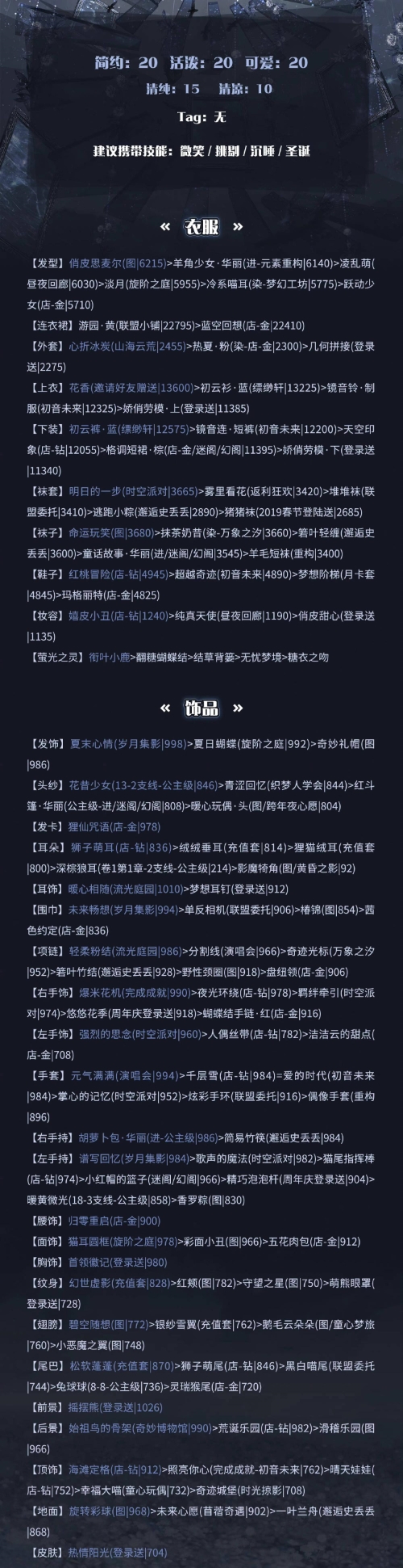 以上的表格当中就是奇迹暖暖的竞技场最齐全的搭配图了,大家快来一起浏览学习吧!