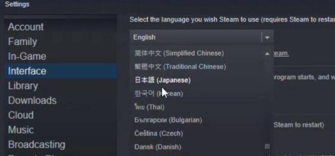 4、最后只要我们重启steam,然后进入游戏就能切换到中文了。