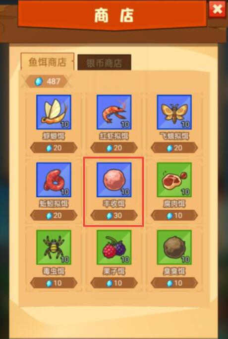 3、丰收饵料我们可以直接在商店中购买到,花费30钻石可以购买10个。
