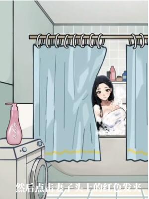 3、进入浴室,将棋子的发卡摘下,拿洗发水给她。