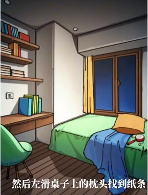 5、回到房间,在枕头下找到规则,出现选项后将拨浪鼓给妻子,然后拉下窗帘。