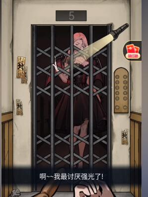 2、电梯会在五楼停下,用左边的手电,照吸血鬼。
