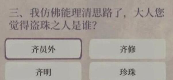 3、我仿佛能理清思路了,大人您觉得盗珠之人是谁?