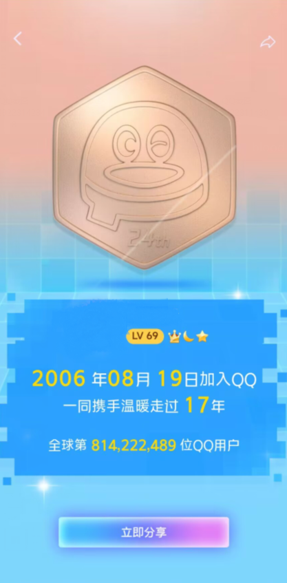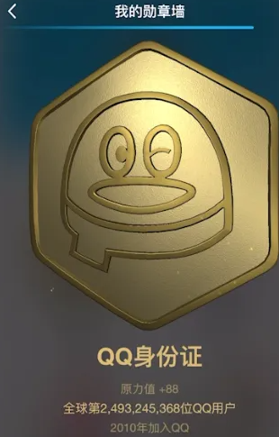 在qq的勋章墙界面,点击qq身份证也能查看自己的账号注册时间。