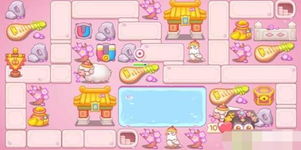 1、首先左上的位置放置吸铁石,用来清理附近的道具。