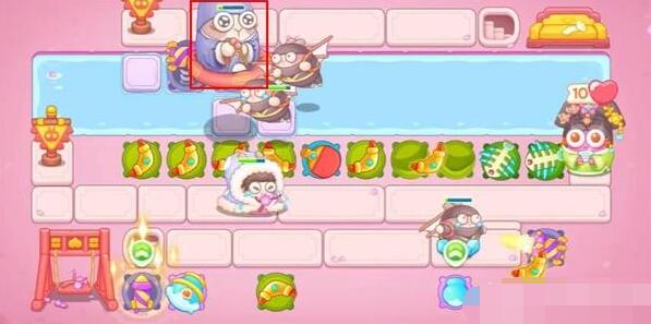 1、首先在中间的位置放置回旋镖,用来清理旁边的道具。