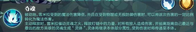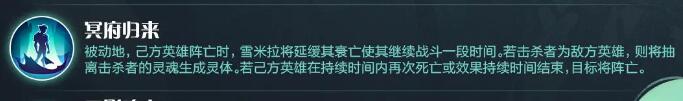 被动技能,将已经死亡的英雄拉起来继续战斗,击杀敌方英雄可以抽取灵体,直到角色再次死亡或者时间结束。