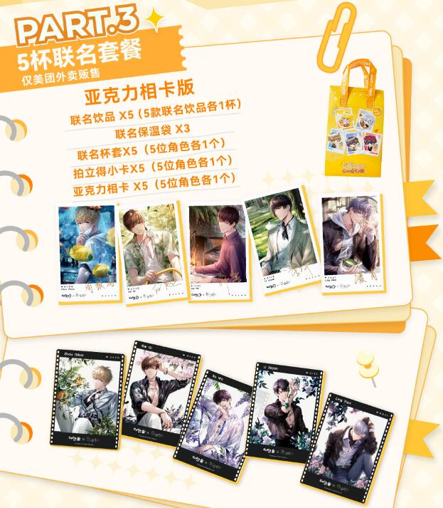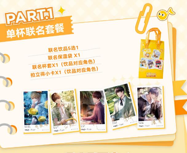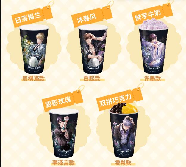 1、本次一共推出了五杯联动饮品,每位男主都有对应的饮品。