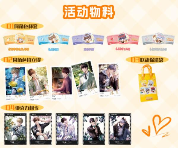 3、联动的周边有杯套、拍立得、亚克力相卡以及联动保温袋等一系列周边。