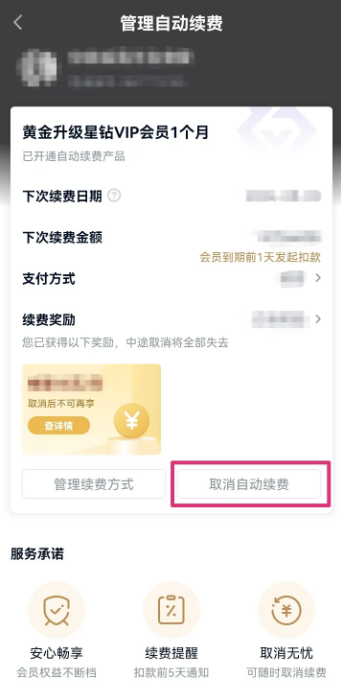 手机端直接进入管理自的续费,然后点击取消自动续费就能关闭了。