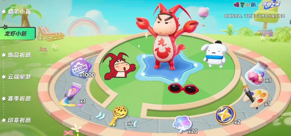 以上就是小编为大家带来的元梦之星联动蜡笔小新皮肤获得介绍,玩家可以在祈愿获得中抽奖获得,更多元梦之星相关内容敬请关注本网站。
