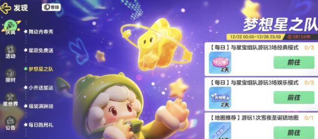 3、等完成三次组队之后,打开发现,找到梦想星之队活动,在这里就可以领取头饰了。