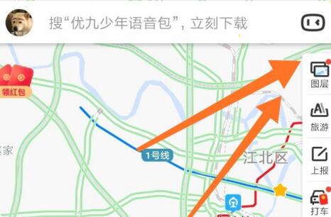 1、首先我们点开百度地图,之后点击右上角的图层。