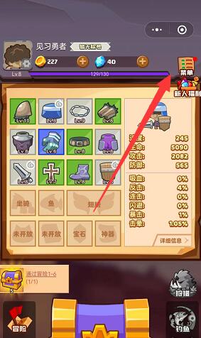 1、首先打开游戏后,可以在游戏大厅页面的右上角找到菜单并点击打开。