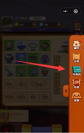 2、然后就会有弹窗在右边出现,可以在里面找到兑换码的图标,点击图标。