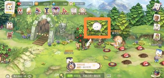 1、位置一:前往青木森林,点击树上白色的气球就可以获得红花。
