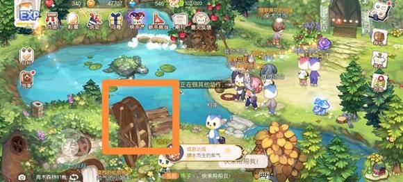 2、位置二:前往青木森林处的池塘边上,点击水车就可以获得紫花。