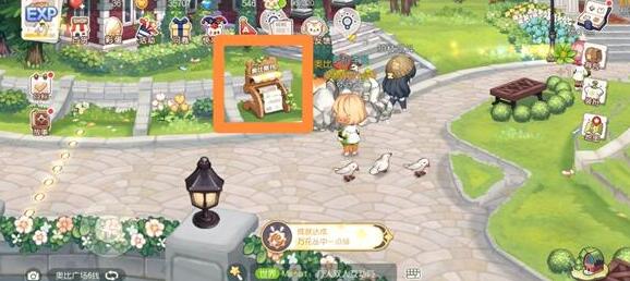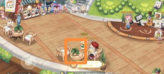 3、位置三:前往奥比广场,点击右下位置桌子上的盆栽就可以获得橙花。