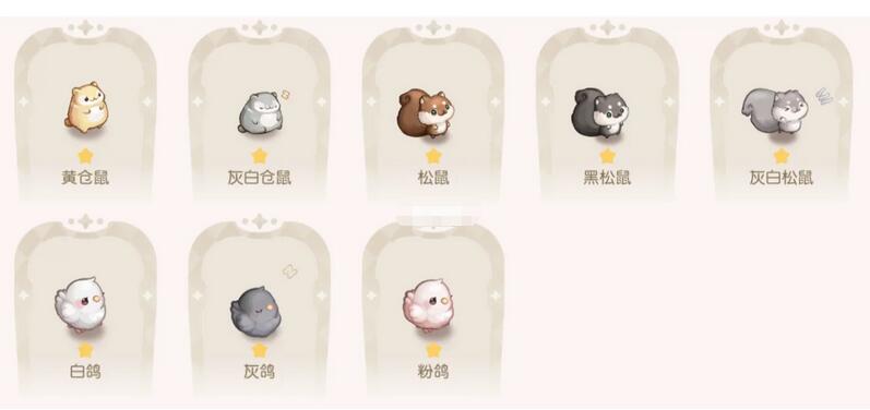 狮鹫,神威天狗,小浣熊,哮天犬,金浣熊,九天凤凰,蓝焰冰狐,雷豹,雪鹄。