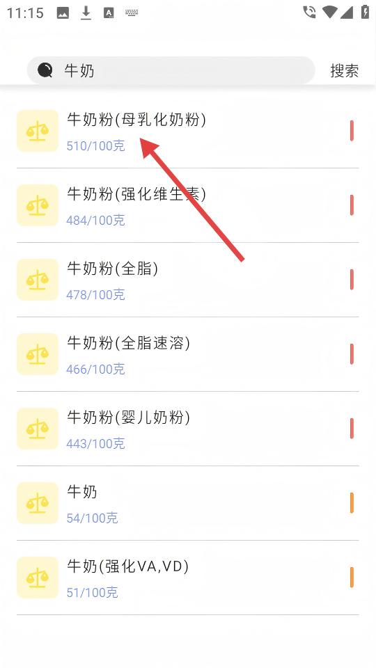 3、在搜索结果中点击【牛奶粉(母乳化奶粉)】查看详情。