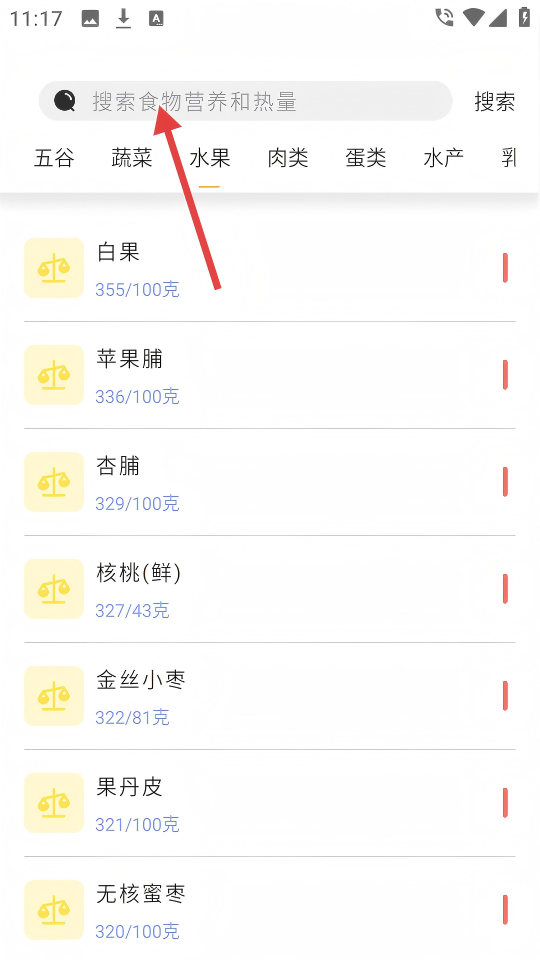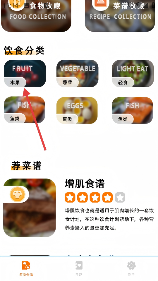 1、在饮食分类区点击【水果】进入对应食物列表。