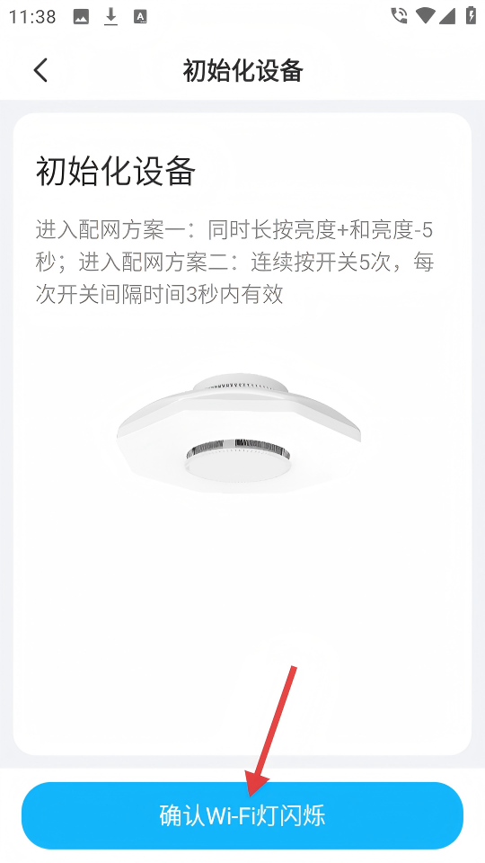 4、确认设备Wi-Fi灯闪烁后,点击【确认Wi-Fi灯闪烁】。