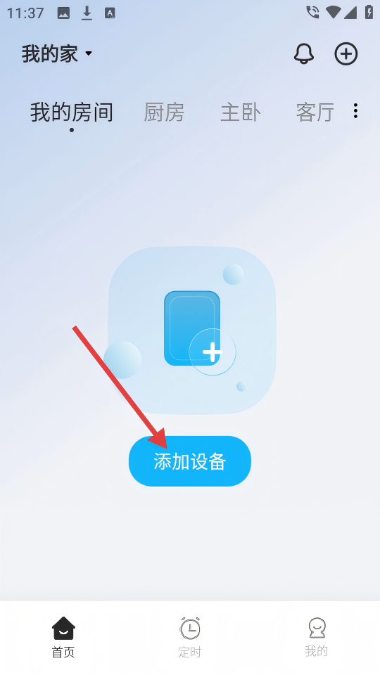 1、进入软件,在【我的家】页面点击【添加设备】。