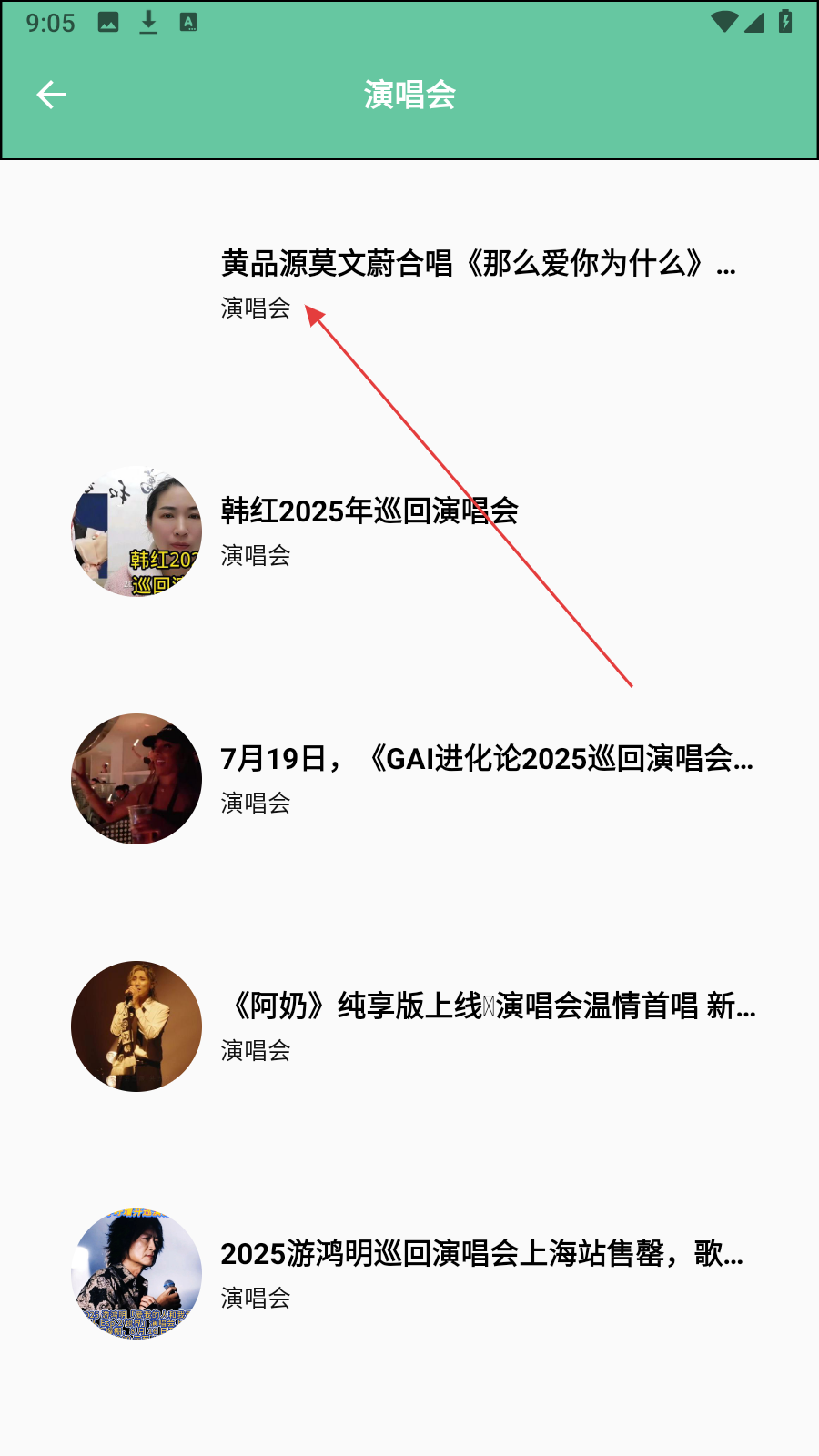 2、在演唱会页面,选择【感兴趣的演唱会】,如黄品源莫文蔚合唱的相关演唱会。