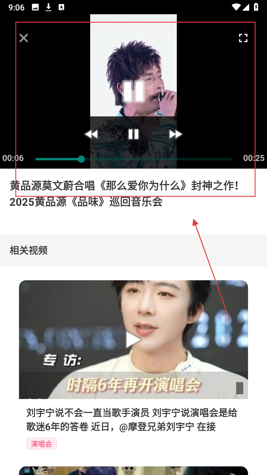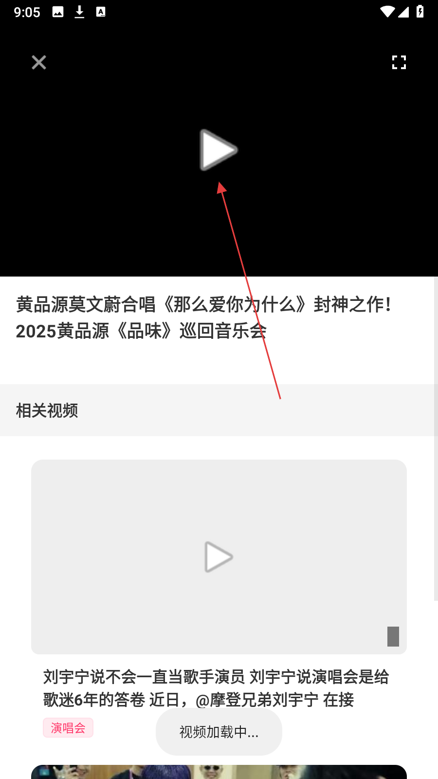 3、进入演唱会详情页面,点击【播放按钮】,开始播放视频。