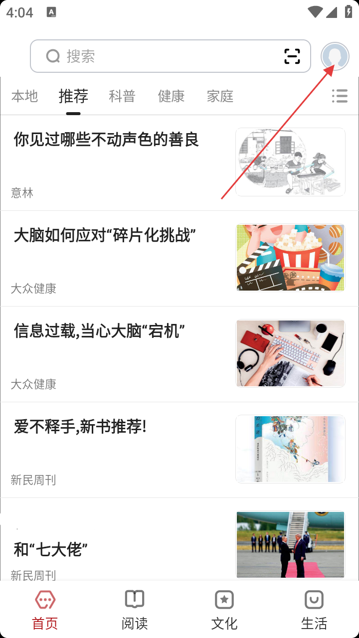 1、打开“数字云浮”APP首页,点击右上角头像,进入个人页面。