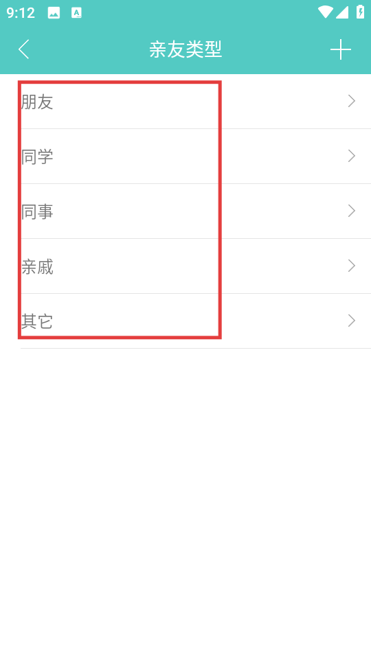 3、在【亲友类型】页面,选择朋友、同学等对应的亲友类型。
