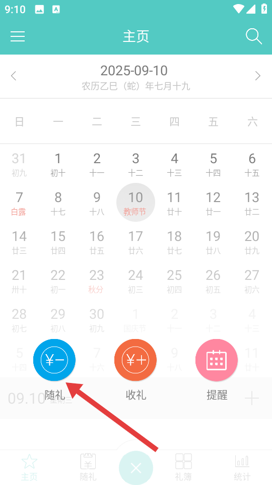 2、在弹出的选项里点击【随礼】按钮,进入页面。