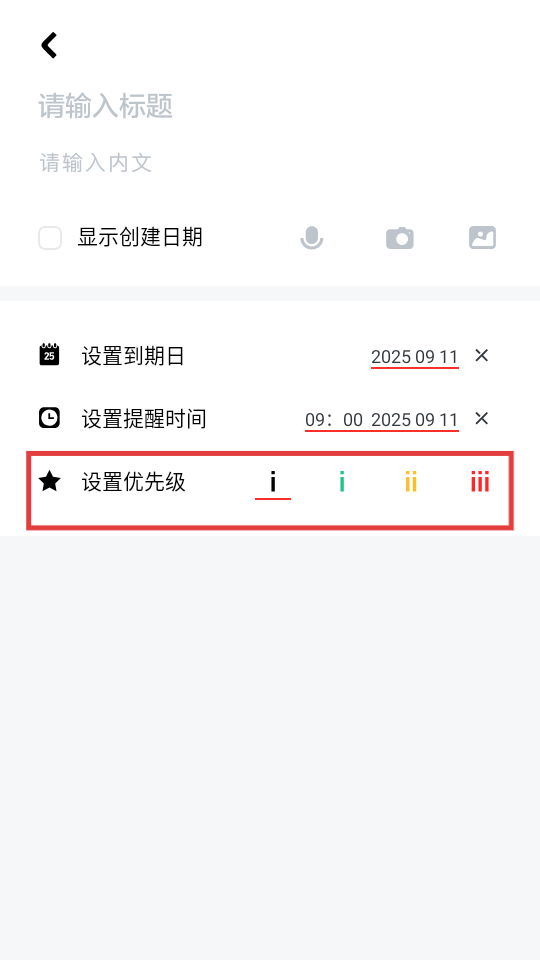 3、在事项编辑页面,在【设置优先级】处选择不同优先级标识。