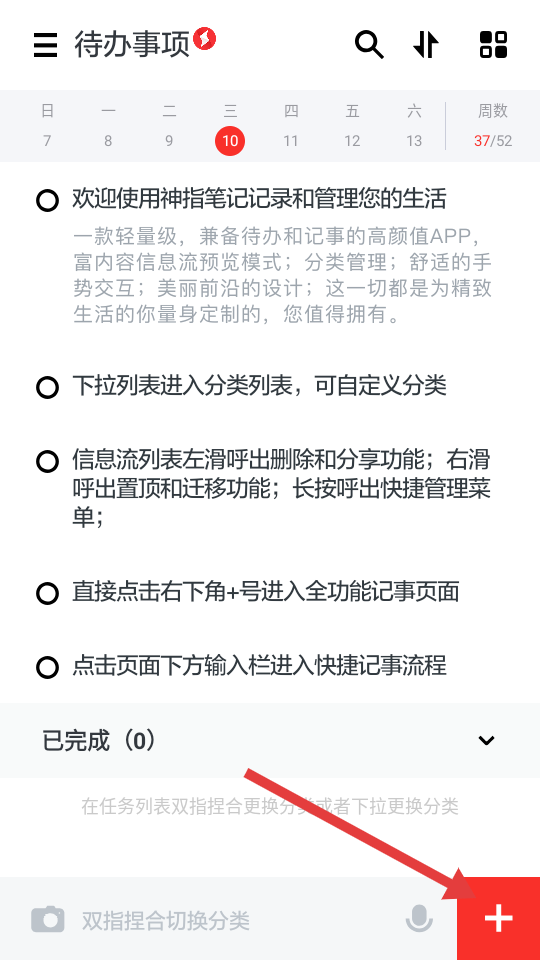1、在待办事项页面,点击右下角红色带【+】号的按钮,进入事项编辑相关流程。