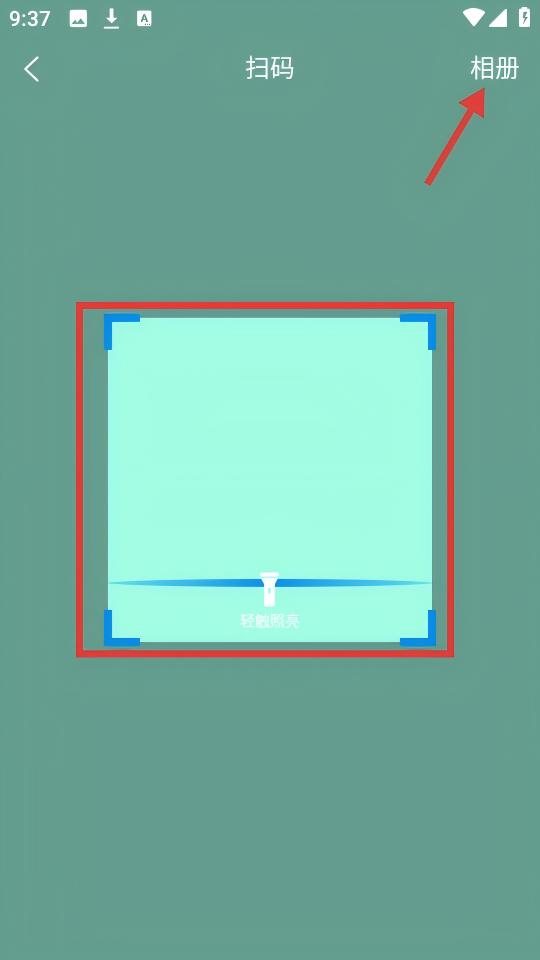 3、在扫码页面,可以用扫码,若要从相册选取图片,点击右上角【相册】选项即可。